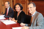 Benoît Legait, président de la Fondation MINES ParisTech, Laurence Poirier-Dietz, directrice générale de GRDF et Vincent Laflèche, directeur général de Mines Paris – PSL, ont renouvelé la Chaire d’enseignement « Le gaz au cœur de la transition énergétique » pour une durée de 5 ans.