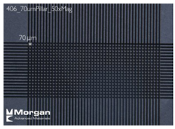 Avec l´amélioration de la microstructure, le matériau peut être découpé finement en dés (avec des piliers de 30 à 50 µm) et l´usinage est facilité en comparaison avec le matériau traditionnel, pour créer des composants solides, fiables, à hautes performances pour les environnements où l´espace est précieux.