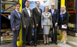 Illustration 1 : Steffen Timm, directeur du site (à gauche), et Jutta Humbert, directrice générale de NORD DRIVESYSTEMS (quatrième en partant de la gauche), accueillent leurs invités (de gauche à droite)