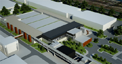 Dans un environnement déjà très construit, la façade de la nouvelle unité, qui allie béton, bardage métallique, polycarbonate et acier, s’intègre de manière harmonieuse au sein des constructions existantes, et en retrait de la voirie publique. Seulement 3 300 m² sont construits, avec une hauteur maximale de 14 m.