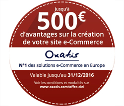 Grâce à cette offre mise en place dès août et jusqu’au 31 décembre 2016, les acquéreurs d’un logiciel de gestion Ciel vont pouvoir bénéficier de 500€ de crédit pour accéder à la solution E-Commerce Oxatis, riche de plus de 400 fonctionnalités (B2B, mobile, marketplaces, réseaux sociaux…), et totalement intégrée aux logiciels de gestion.