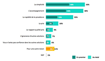 Deux raisons expliquent que les entrepreneurs aient massivement recours à ces solutions traditionnelles. Pour 30% d’entre eux, c’est la simplicité qui est évoquée en premier lieu - et c’est un critère de décision pour 50% des créateurs. Ceci se comprend assez bien : en se tournant vers son avocat on son comptable, l’interlocuteur est unique et l’on peut déléguer les tâches.