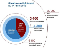 À fin juin 2016, un véritable mouvement est amorcé ! 2000 entreprises se sont déjà engagées dans les différents programmes de déploiement mis en place en régions et 1400 entreprises se sont engagées dans les dispositifs développés au niveau national et par les filières dont le programme Robot Start PME