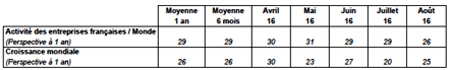 Le palier de croissance modérée observée depuis un an dans le monde se maintient en août ; l’indicateur du climat des affaires oscille autour de 25, contre 33 entre les étés 2013-2015. L’optimisme continue de dominer en Amérique du Nord.