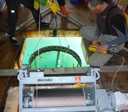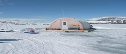 Pour les aider à mener à bien cette étude, des prélèvements sont régulièrement effectués depuis un camp de base situé sur la banquise. Un treuil avec, comme point d’ancrage, un trépied surplombant un trou fait dans la glace est ainsi utilisé par les scientifiques pour descendre et remonter différents instruments océanographiques (sondes de prélèvement, etc.) lors de leurs missions.