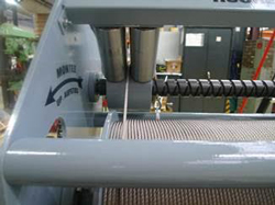 L’entrainement se fait par une vis à filets croisés (une hélice à droite et une hélice à gauche taillées et raccordées à l’extrémité) toujours entrainée dans le même sens et un doigt de trancannage automatiquement réversible à chaque fin de course de la vis. Les fins de course de la vis de trancannage et la forme du doigt de trancannage sont ajustés précisément pour assurer un parfait guidage le long de la vis.
