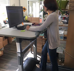 "Depuis que nous avons fait l’acquisition du walking desk, notre ambiance a changé : nous sommes plus soudés, plus enthousiastes et partageons différemment nos bureaux. Cela a créé une dynamique dans l’équipe. Une ambiance plus fun. D’un point de vue individuel, c’est génial car on se sent très actif, le sentiment d’optimiser la journée en faisant du sport tout en travaillant. Bizarrement, la journée passe plus vite, car il y a une sorte de concentration et de diversité des activités. Il est très facile de marcher lentement tout en écrivant sur l’ordinateur, on s’y habitue très vite. Si je devais dire ce que je préfère, je vous dirai que ce sont tous les moments passés au téléphone et qui habituellement nous donnent l’impression de perdre notre temps.. Et bien aujourd’hui plus du tout ! C’est un plaisir ! Et la palme, c’est la relation client. Une entrée en matière surprenante avec eux plus détendue quand ils rentrent chez nous, un petit côté novateur qui émerge d’entrée de jeu. Génial ! On en veut encore d’autres bureaux de marche !" Daphné Battaglia, Dirigeante d’Attribut Conseils à Ris Orangis.