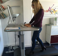 "Le Walking Desk a révolutionné notre approche traditionnelle du « poste de travail », de ses contraintes de position et de sédentarité. Son utilisation quotidienne (une, deux, trois heures ou plus) permet de dépasser allègrement les recommandations d’activité physique (10.000 pas par jour) et ne présente pas de contrainte en terme de travail : téléphoner, taper sur un clavier, voire des activités nécessitant plus de précision (mise en page et activités graphiques) ne sont pas gênées par le mouvement. On module sa vitesse de marche en fonction du degré de précision souhaité, et le tour est joué. Le plus étonnant, c’est qu’on oublie totalement que l’on marche. Toute l’équipe l’a adopté, et nous avons du mettre en place un planning de réservation pour l’utilisation du seul modèle acheté à ce jour (modèle réglable électriquement en hauteur indispensable lorsque plusieurs personnes utilisent le Walking Desk). Mon challenge pour l’hiver prochain : rattraper l’une de mes collaboratrices qui vient de dépasser les 500 kilomètres de marche en quelques mois !" François Massiani, Directeur Associé de Littlebig Road.