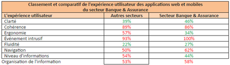 Concernant l’expérience utilisateur, le secteur de la Banque & Assurance se distingue positivement sur deux critères :