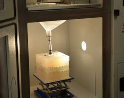 Une fois ce moule durci, la pièce est retirée. Il ne reste alors plus qu’à faire couler de la résine à l’intérieur du moule à l’aide d’une machine de coulée sous vide, faire cuire la résine, ouvrir le moule et enfin sortir la pièce finie.