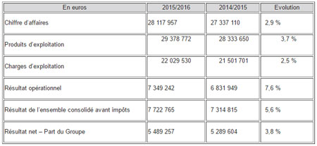 L’activité commerciale a notamment bénéficié de la forte dynamique, tant sur le plan national qu’international, des activités de ventes et de locations de licences à destination des PME/PMI et des grands comptes. Le résultat opérationnel progresse de 7,6% à 7 349 242 €, induisant une rentabilité opérationnelle de 26,1%. Dans la même lignée, le résultat net atteint 5 489 257 € en hausse de 3,8%, portant ainsi la rentabilité nette à 19,5%.