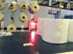 Les techniciens du site ne parvenant pas à s’affranchir des quelques soubresauts de la machine, dont le fonctionnement n’est pas spécifiquement surveillé par un opérateur, ont opté pour la mise en place d’un moyen de contrôle de la pose d’étiquettes pour éviter d’investir lourdement dans un nouvel équipement. Ils se sont d´abord intéressés aux systèmes de contrôle par vision. « Mais nous nous sommes rendus compte que la mise en place d’une solution de contrôle par caméra, réclamant de la programmation et l’installation d’un dispositif d´éclairage, serait longue et trop coûteuse pour l’application visée », indique Daniel Gille, responsable maintenance de l’unité de transformation en rouleaux d’essuie-tout.