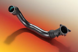Ultramid® Endure BM permet de réaliser une double économie : coûts d’assemblage pour les transformateurs et poids des composants pour les constructeurs automobiles. Le polyamide haute température peut remplacer les tubes fabriqués à partir de tôles d’aluminium laminées. Comme l’espace d’installation réduit ne permet plus d’utiliser des profilés tubulaires de forme circulaire, les tubes métalliques doivent être fabriqués par hydroformage, un procédé très onéreux. Les tubes en matériau BASF peuvent être fabriquées par soufflage en différentes formes. La surface interne reste lisse, abaissant la résistance à l’air par rapport à d’autres matières plastiques.