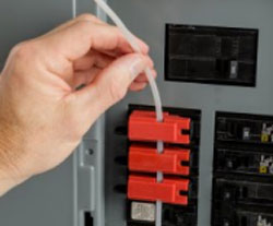 Les dispositifs TAGLOCK™ peuvent être installés facilement et rapidement. Appliquez le dispositif de condamnation/consignation de disjoncteur, faites passer un collier de serrage dans son orifice et ajoutez une étiquette non adhésive. Les dispositifs de condamnation/consignation TAGLOCK™ sont suffisamment petits pour être appliqués à la plupart des disjoncteurs placés les uns à côté des autres. Faites passer un collier de serrage en nylon dans l’orifice de chaque dispositif de condamnation/consignation appliqué pour bloquer tous les disjoncteurs en position d’arrêt. Un cadenas peut être installé au besoin pour une sécurité accrue.