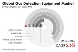 Selon Transparency Market Research, le marché mondial de la détection de gaz devrait passer de 3,4 milliards de dollars en 2015 à 5,6 milliards de dollars en 2024, ce qui représenterait un taux de croissance annuel pondéré de 5,6 %.