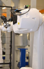 Lorsque la cellule robotisée est en fonctionnement, une caméra placée au plafond surveille la bande transporteuse...ce qui permet au robot de savoir précisément ce qu’il doit saisir et comment effectuer l’opération.