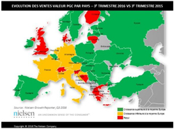 « Le marché des produits de grande consommation en Europe continue de croître à un rythme ralenti, en partie en raison de la performance des cinq grands marchés, qui, sauf un, affichent une croissance inférieure à la moyenne européenne », explique Olivier Deschamps, responsable des services à la distribution pour l’Europe chez Nielsen. « L’exception est l’Espagne dont la situation économique a été stimulée par un été long et par l’impact des touristes, qui ont permis une croissance volume soutenue des produits saisonniers. En France, alors que les volumes se détériorent, le panier se valorise – sous l’effet des innovations, des produits biologiques et issus de petites entreprises locales – et soutient la croissance du chiffre d’affaires. »