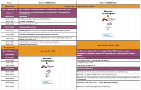 La journée sera rythmée par des interventions, des témoignages d’étudiants ou d’entrepreneurs, des visites d’ateliers sous forme de marathon technologique par équipe, et par le lancement du concours Mécanodrone...de quoi découvrir toutes les facettes de l’école. Suivez le guide !