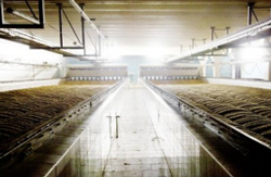 Ces caissons ont une profondeur de 2 m environ. En outre, chaque retourneur dispose de 14 vis verticales entraînées individuellement. Elles piochent le grain en germination une ou deux fois par jour selon les besoins pour l’aérer et le maintenir au frais. Enfin, un racloir monté sur la machine est utilisé pour décharger le malt vert.