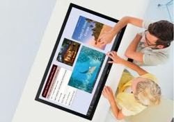 Grâce à la solution Sharp Display Connect, l’ensemble des participants peuvent se connecter au moniteur à l’aide de leurs portables ou de leurs tablettes. Cette connexion n’est pas limitée au partage du même contenu d’un appareil à un autre : il leur est également possible d’interagir sur les écrans tactiles de leurs dispositifs (par exemple pour prendre des notes), mais aussi de travailler directement sur du contenu hébergé sur un appareil personnel depuis le PN-40TC1 hôte.