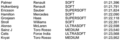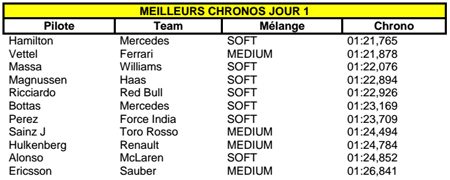 « A l’occasion de cette première session, nous avons pu vérifier que les chronos s’étaient abaissés de manière considérable, de l’ordre de cinq secondes par rapport aux références établies en 2015. Hier, Valtteri Bottas a signé un temps en 1m19.705s avec les pneumatiques ultra-tendres. Considérant que la pole à Barcelone, en 2015, avait été fixée en 1m24.681s, nous pouvons dire que nous avons atteint nos objectifs. »
