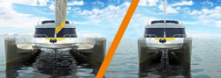 Les bateaux à double coque présentent de grands avantages.. Ils permettent de naviguer droit en toute sécurité, ils sont incoulables et plus pratiques à manœuvrer. La stabilité de ces bateaux est obtenue par une distribution optimale du poids entre deux flotteurs. La largeur par contre n’est pas source d’économies. Un catamaran a besoin de deux places d’arrimage en port et la reprise sur grue est compliquée et chère. Afin de pallier à ces inconvénients et de réaliser des économies, la société Futura Yacht Systems GmbH a mis au point le premier catamaran de haute mer à largeur variable. Sa largeur, qui peut atteindre huit mètres, peut être réduite à 4,85 mètres. Cette réduction de la largeur est assurée en rentrant les deux flotteurs à l’aide d’un mécanisme d’ajustement. Le bateau n’a plus alors besoin que d’une place. La reprise sur grue et le transport par camion en sont aussi simplifiés. Les différents composants peuvent aussi avoir une structure modulaire comme dans le secteur automobile. Autant de détails qui permettent de réaliser des économies importantes.