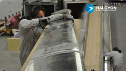 Nouveauté présentée au JEC 2017 par Halcyon : Halcyon présentera une nouvelle application de son procédé de fabrication sur des pales d’éoliennes. Avec ce matériau, moins coûteux que de la fibre de carbone, les pales gagnent en rigidité pour un poids limité (4 m. de long et 0,33 m. de large pour moins de 15 kg). La raideur donnée par la conception « sandwich » améliore le comportement vibratoire des pales et le rendement de l’éolienne.