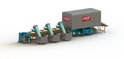 Cette ligne permet de produire en continu des panneaux structurels, à partir de déchets de composites thermoplastiques. Ces derniers, préalablement concassés, triés puis déchiquetés sous forme de broyats, sont déposés aléatoirement sur un tapis de convoyage grâce à plusieurs modules d’alimentation. Les broyats sont ensuite liés par thermocompression sous forme de plaques. Débitables à la longueur désirée en sortie de ligne, celles-ci peuvent être ensuite découpées, pliées, soudées ou encore thermoformées pour réaliser des pièces à la fois légères et résistantes.