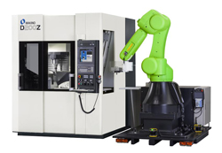 Le D200Z est conçu pour la manipulation des palettes et des pièces avec un dispositif d’obturation automatique qui facilite le passage à l’automatisation.. Des solutions d’automatisation intelligentes de Makino intégrant des systèmes complexes avec des robots 6 axes ainsi que des systèmes d’automatisation standard disponibles sur le marché peuvent être facilement intégrés à la machine.