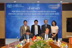 Le contrat, conclu pour une durée de 25 ans, porte sur l’approvisionnement de l’aciérie en gaz de l’air oxygène, azote et argon par pipeline. Les deux unités seront mises en service en novembre 2018 dans la zone économique de Dung Quat, située au sud du Centre-Vietnam. Au total, elles produiront par heure 80 000 Nm3 d’oxygène et 160 000 Nm3 d’azote, ce qui correspond respectivement au volume d’environ cinq et dix camions-citernes. Cette installation se positionne ainsi comme le plus grand site de production de gaz industriels au Vietnam. Ce projet représente un investissement de plus de 90 millions de dollars (soit 82 millions d’euros) pour Messer.
