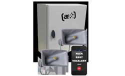 Afin de faciliter une première mise en place, ae&t propose quatre formules clé en main, les PACK EASY VOXALERT® à déclenchement soit par pupitre (3 actions programmables, déclenchement et diffusion de messages), par SMS, par télécommande radio et par téléphone, via un serveur vocal. Ces packs comprennent deux sirènes puissantes audibles jusqu’à 200 m.