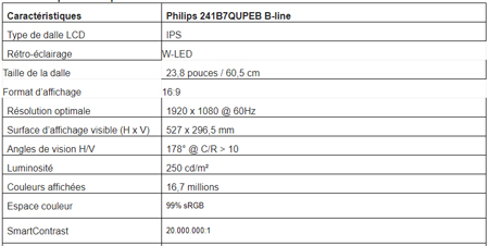 Le Philips 241B7QUPEB B-line est disponible en ligne au prix indicatif de 279 € TTC.