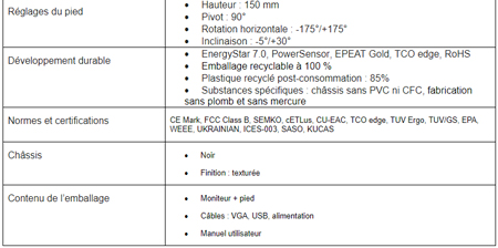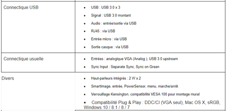 Le hub USB de l’écran permet bien évidemment de lui raccorder une multitude de périphériques externes tels que clavier, souris, disque dur externe, appareil photo ou caméra, ou encore clé USB un aspect particulièrement pratique pour de nombreux ordinateurs portables ultra fins, dont la connectique reste souvent assez chiche. A noter que l’écran est par ailleurs équipé de haut-parleurs intégrés.