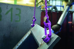 La nouvelle ligne d’élingues Maurin est composée de modèles à 1, 2 ou 4 brins simples ou réductibles, en acier haute résistance VIP grade 100 (revêtement thermochromique rose) ou ICE grade 120 (revêtement thermochromique pourpre).