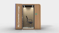 myConnectedLounge® permet de fournir de manière personnalisée les conseils et l’assistance attendus par les collaborateurs de l’entreprise, mais aussi de distribuer des matériels ou des outils de manière innovante, sans contrainte horaire et de manière immédiate. myConnectedLounge® se matérialise sous la forme d’une cabine connectée de seulement 2 m² (photo) et peut être très facilement installé dans les différents lieux stratégiques de l’entreprise.