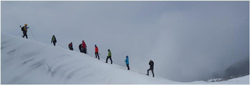 Jour #2 : l’Aiguille du Tour : Les choses sérieuses ont commencé avec l’ascension de l’Aiguille du Tour et ses 3.540 mètres. Une montée difficile à cause d’un brouillard épais, mais qui a permis de tester pour la première fois crampons, piolets et autres matériels d’alpinisme..