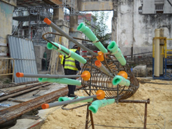 Sur ce terrain de 2 000 m², l’entreprise BAUER, en charge des fondations profondes, a dû forer 59 pieux de Ø 1000 mm dont le pré-recépage RECEPIEUX a dû être réalisé à une profondeur de moins 8 mètres en dessous de la plateforme de travail, ainsi que 184 pieux sécants de Ø 1000 mm avec un pré-recépage RECEPIEUX sur une hauteur de 1m.