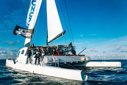 Issue de l’ingéniosité du skipper chef d’entreprise de Port La Forêt, "Z2015" est un voilier catamaran de 18,28 m de long pour 9 m de large et un déplacement de 8 tonnes environ. Il sera propulsé par 2 moteurs hors-bord dernière génération Suzuki DF300AP XX de 300 chevaux, montés sur des berceaux relevables. Doté d’un mât de 23 m et d’une surface de voilure de 165m²., cette plate-forme hybride (voile et moteur) agréé norme CE, peut embarquer 12 personnes en version hauturière, et 32 personnes en version côtière.
