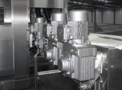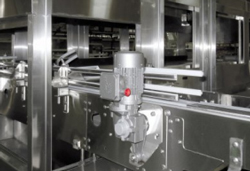 Dans le cadre de deux commandes importantes récentes, NORD a configuré deux entraînements pour tapis roulants, avec des rapports de transmission très élevés, pour G.C. Evans. L’un de ces systèmes, un motoréducteur à arbres parallèles, assure le transport de 20 000 pots de confiture de plus d’1 kg chacun à travers un tunnel de refroidissement. Son réducteur est configuré avec un rapport de 2 500:1 pour atteindre une vitesse de sortie de 0,6 tour par minute. Ce système d’entraînement présente différentes options spécifiques permettant de répondre aux exigences des procédures de transformation alimentaire en matière d’hygiène : une finition en acier inoxydable très résistante, un lubrifiant pour engrenages à usage alimentaire, un bouchon de purge et un indicateur visuel du niveau d’huile. Le clapet d’évent de NORD régule la pression le réducteur lorsqu’il chauffe et refroidit. Il empêche l’entrée de poussière ou de liquides, ce qui risquerait de contaminer l’huile et de compromettre ses propriétés lubrifiantes. Cette mesure permet d’allonger l’intervalle de vidange d’huile. Les joints, engrenages et roulements sont moins sujets à l’usure.