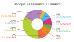 Si, tous secteurs confondus, 50% des marques déclarent répondre aux appels téléphoniques dans les 30 secondes, les entreprises du secteur Banque / Assurance / Services financiers font figure de mauvaises élèves puisqu’elles ne sont que 21% dans ce cas.