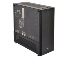 Si le PC-V3000 ressemble à un classique boitier monolithique Lian Li, il dispose cependant de deux compartiments séparés pour maximiser le refroidissement des composants, ainsi que d’un éclairage RGB subtil. De cette façon, le PC-V3000 exhale le vrai style d’un boitier haut de gamme de qualité sans se retenir sur les fonctionnalités, qui comprennent un accès à un port USB 3.1 Type-C et à un port HDMI via le panneau de connectique avant. Les boutons pour le contrôle du RGB sont cachés derrière la façade, mais permettent une personnalisation facile de la bande de diodes avant.
