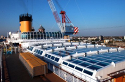 Des entraînements NORD sont également utilisés pour mettre les plateformes de lavage de vitres en position. « Nous sommes actuellement en train d’équiper deux bateaux », a déclaré Silvano Lonzar, concepteur en chef chez Navalimpianti, « un avec six et l’autre avec sept plateformes de lavage de vitres motorisées pour les côtés droit, gauche et la poupe du bateau. » Pour chaque système de lavage de vitres, quatre motoréducteurs à couples coniques et à vis sans fin actionnent les treuils qui permettent de déplacer les plateformes à l’horizontale. Les motoréducteurs à vis sans fin sont autoserrants et n’ont donc pas besoin de freins pour s’arrêter. Les ventilateurs des moteurs installés verticalement sont protégés de la pluie par une double tôle parapluie. Les autres dispositifs de protection mis en place dans le cadre de cette application extérieure à l’atmosphère salée et saturée en chlore incluent des boîtes à borne scellées avec de la résine époxy et des arbres creux en acier inoxydable. Une peinture cinq couches pour opérations offshore, avec peintures multicomposant particulièrement résistantes, assure une protection anticorrosion de classe 5 conformément à la norme EN 12944.