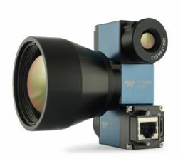Un autre exemple intéressant pour la détection de températures est celui de la nouvelle famille de caméra thermique Calibir de Teledyne DALSA. Les points forts de cette nouvelle série résident dans leur forme compacte de 29 x 29 x 29 mm3, leur grand choix de longueurs focales et la possibilité d’utiliser des interfaces différentes à un prix attractif. Les modèles avec interface GigE sont faciles à combiner avec de nombreux logiciels de vision disponibles sur le marché et rapides à mettre en route. La série Calibir GXT est particulièrement intéressante, car elle permet d’obtenir des mesures radiométriques réelles de température, sans obturateur mécanique. Habituellement, les caméras radiométriques ont besoin d’un obturateur mécanique pour que le capteur puisse se recalibrer régulièrement et éviter que les valeurs de températures affichées ne s’éloignent constamment des valeurs réelles mesurées. Cependant, ce processus de recalibrage induit un temps de pause très court de l’image, allongeant d’environ 2 secondes le temps de prise de vue. La caméra Calibir GXT permet d’éviter ce problème et fournit des images thermiques en continu. Si pourtant l’application nécessite une précision extrêmement fine des mesures, la caméra Calibir existe également avec un obturateur mécanique.