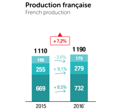 La production française a progressé de 9,5 % en 2016 par rapport à 2015
