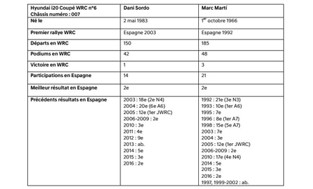 Pour Dani Sordo et son copilote Marc Martí, le Rallye d’Espagne est un moment d’émotion à domicile. Ils ont déjà conquis deux troisièmes places en 2017 et ils sont montés à deux reprises sur le podium en Espagne avec Hyundai Motorsport en 2015 et 2016. Un coup du chapeau est l’objectif du week-end.