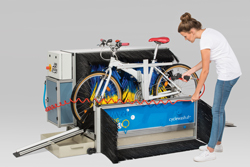 "Laver son vélo en passant", tel est le slogan de l’installation cycleWASH. Et c’est bel et bien de cela qu’il s’agit. Il suffit de pousser son vélo dans l’installation, il en ressort propre 3 à 5 minutes plus tard. Des brosses douces le nettoient en profondeur avec précaution. L’installation utilise l’eau en circuit fermé et est dotée d’un système de filtrage à plusieurs niveaux afin de réduire la consommation d’eau et les frais d’exploitation. Le lavage est assuré avec un détergent bio ménageant l’environnement. L’installation standard fonctionne à l’électricité mais peut aussi fonctionner à l’énergie solaire, autre argument en sa faveur pour l’écobilan. Elle est extrêmement compacte et peut être transportée facilement dans un véhicule familial, ce qui la rend intéressante pour les organisateurs d’événements, les locations de vélos ou les stations-service.