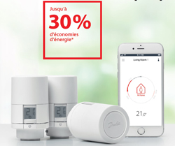 Danfoss Smart Heating offre plus qu’un simple confort d´utilisation. Les solutions de chauffage intelligent présentent également un potentiel d’économie d’énergie significatif. Contrairement aux têtes thermostatiques classiques, les thermostats électroniques peuvent automatiquement désactiver votre chauffage le cas échéant, régulant l’utilisation et permettant des économies allant jusqu’à 30% sur votre facture de chauffage.
