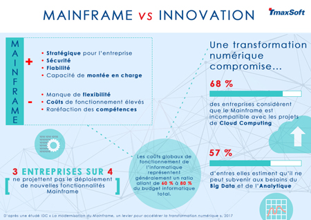 TmaxSoft, leader d’innovation en matière de Cloud, d’infrastructure et de modernisation du Mainframe, dévoile les résultats de l’étude intitulée « La modernisation du Mainframe, un levier pour accélérer la transformation numérique », réalisée par le cabinet IDC. Et les conclusions sont sans appel : résoudre l’équation de la pérennisation de leur patrimoine applicatif d’une part, et de l’innovation d’autre part, est un véritable casse-tête pour les entreprises, tant les contraintes budgétaires sont importantes.