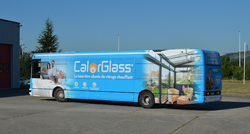 Le véhicule de 12 mètres de long, sur 2 mètres 50 de large, est divisé en deux espaces : un premier à l’avant, dédié à l’exposition des produits verriers du groupe, et un second à l’arrière, entièrement aménagé afin d’organiser des réunions et formations directement au sein du véhicule. Si ce dernier est customisé aux couleurs de l’innovation CalorGlass®, sa solution de vitrage chauffant par rayonnement commercialisé depuis 2015, il a bien pour vocation de présenter l’ensemble du savoir-faire de l’entreprise.