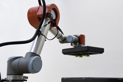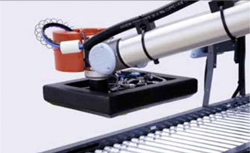 L’un des atouts du robot collaboratif est de pouvoir s’utiliser sans protection physique, les opérateurs pouvant ainsi travailler autour du robot en toute sécurité. Cette solution permet en complément d’assurer un process en continu, l’opérateur pouvant facilement décharger une palette sans devoir arrêter le robot collaboratif.